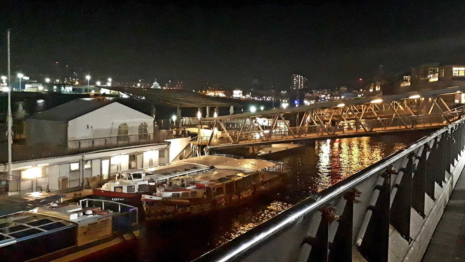 Umfangreich gesättigt fahren wir in der letzten Dämmerung mit der U-Bahn an die Landungsbrücken hinaus. Die Pontonbrücken, der Fluss, die Schiffe, die Hafenkräne: das ist einfach ein ganz besonderer Ort, wo man sich das Fernweh um die Nase wehen lassen kann.