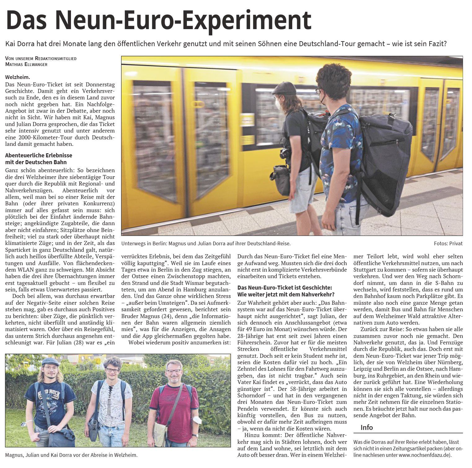 Artikel in der Welzheimer Zeitung vom 3. September 2022