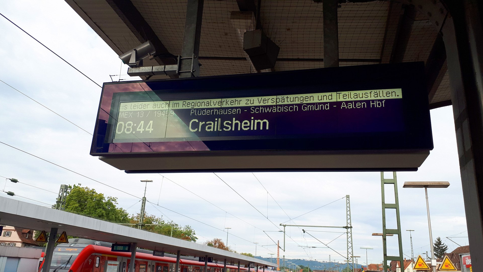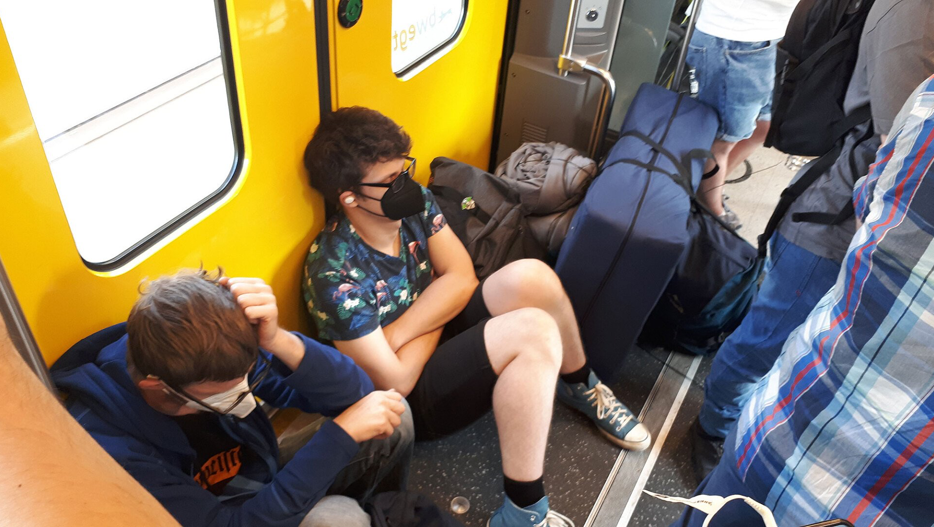 Die Reise beginnt mit einem Kompromiss, denn wir fahren mit dem Auto zum nächsten Bahnhof. Am letzten Tag könnte es spät werden – und dann kämen wir mit dem Bus nicht mehr nach Hause in den Schwäbischen Wald. Die Parkplätze rund um den Bahnhof wurden in Schorndorf konsequent abgeschafft, so dass wir noch eine Viertelstunde Fußweg haben. Der MEX – so heißen bei uns die Regionalzüge – nach Crailsheim kommt mit Verspätung, aber wir haben ein gutes Zeitfenster fürs Umsteigen und sind guter Dinge. Der Zug ist recht voll, aber wir finden Sitzplätze. Die Bahn von Crailsheim nach Nürnberg ist dann so voll, dass man nicht mal richtig stehen kann, also hängen wir in der Menge, eine Hand an irgendeiner Haltestange. Mein Ältester hat Glück, denn er findet genug Platz, um an der Tür auf dem Boden zu sitzen. Der erste Tipp für alle Regionalzug-Reisenden: Umsteigen ist immer ein Lottospiel. Seht zu, dass Ihr genug Luft zum Umsteigen habt, denn Verspätungen zwischen 5 und 15 Minuten liegen völlig im Rahmen – und dann kann der Anschlusszug auch mal weg sein.
