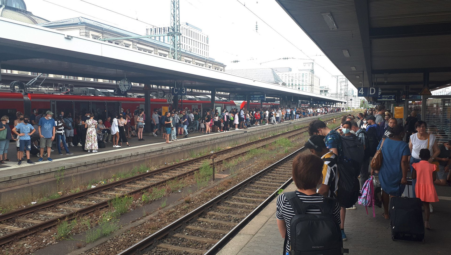 Direkt über uns bläst die Klimaanlage eiskalte Luft nach unten und nach einiger Zeit wird es unangenehm kalt. Wer eine Jacke hat, holt sie aus dem Koffer, aber viele haben nur die Sommerkleidung, die sie am Leib tragen, und frieren augenscheinlich ganz erbärmlich. Während der gesamten Fahrt taucht kein Zugpersonal auf, aber es wäre wohl sowieso nicht durchs Gedränge gekommen. Die Dame gegenüber hat ihrer kleinen Tochter schon eine Jacke angezogen; irgendwann zieht sie dann die eigene Jacke aus und fädelt die Beine des immer noch frierenden Mädchens hinein. Überall liest man, dass man die Klimaanlage im Auto nicht zu kalt einstellen soll, weil man sonst krank werden kann – aber die Bahn dreht eiskalt auf unter 20 Grad und setzt die Leute in einer Jahreszeit, in der alle im T-Shirt unterwegs sind, stundenlang diesen Temperaturen aus. Ohne jede Möglichkeit, etwa daran zu ändern. Was soll das? Ich habe eine Sweatjacke dabei und die bekommt jetzt erstmal mein Ältester. Später geht die Jacke dann im Ringtausch umher, damit wir uns alle mal aufwärmen können. Noch dazu ist es so wahnsinnig eng, dass ich von der Zwangshaltung irgendwann einen schmerzhaften Krampf im Bein bekomme. Ganz ehrlich: ich fühle mich nicht wie ein „Fahrgast“ von der Deutschen Bahn behandelt, sondern wie irgendeine billige Fracht. 9-Euro-Ticket hin oder her. Die Fahrt bleibt eine Tortur, bis wir endlich in Leipzig ankommen.