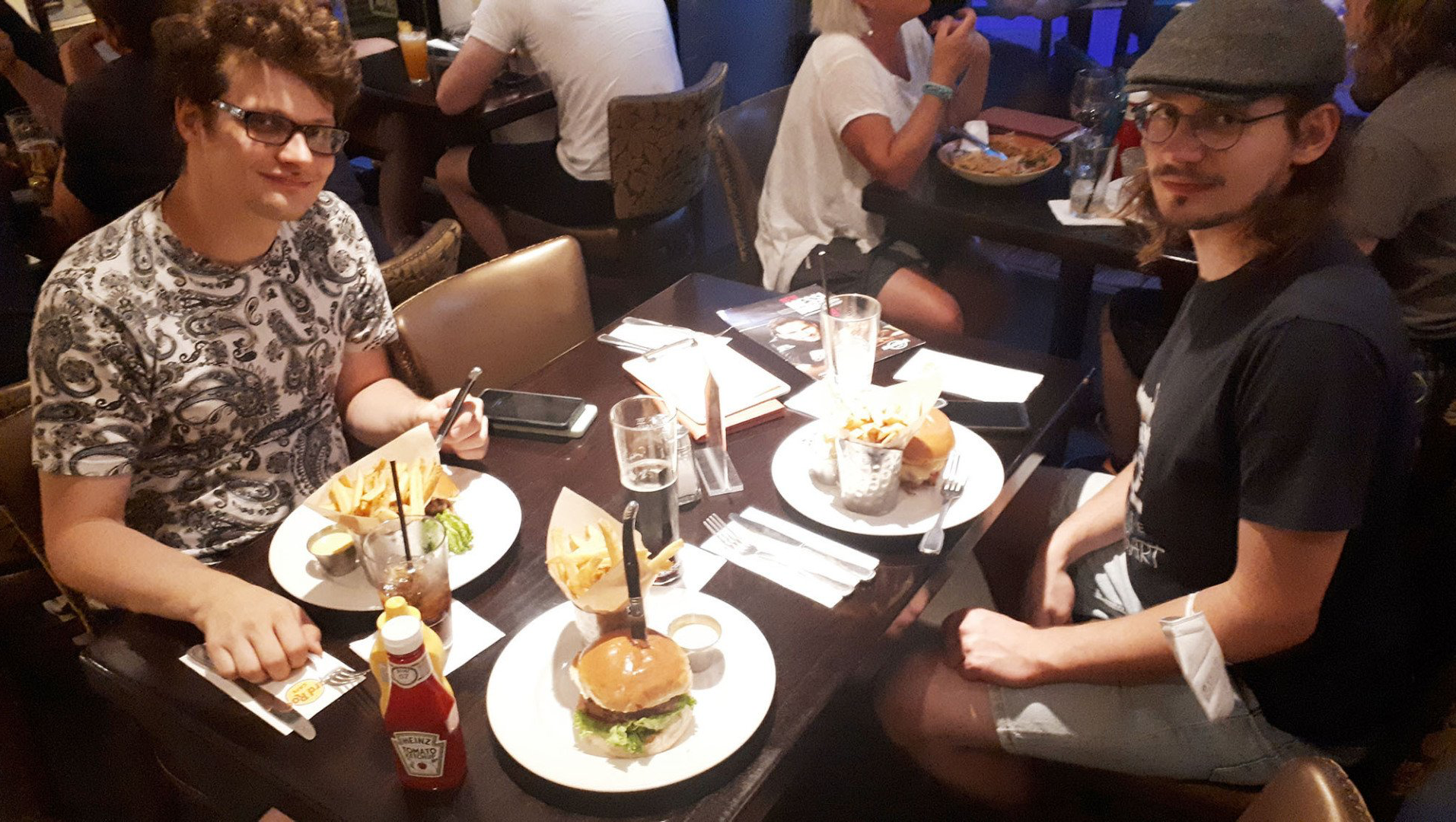 Wir planen, unseren Berlin-Aufenthalt mit einem Besuch des „Hard Rock Cafe“ zu beschließen. In der Hinsicht sind wir Jäger und Sammler und ich muss gestehen, dass ich Opfer des Kapitalismus über 20 T-Shirts von Hard Rock Cafes besitze, die ich überall in Europa vor Ort erstanden habe. Vor dem Lokal steht eine Schlange und wer keine Reservierung hat, kommt an diesem Tag nicht mehr rein, wie ich erfahre. Normalerweise zücke ich dann meinen „Priority Seating Coupon“, mit dem ich als verifizierter Besucher überall hineinkomme, aber offenbar wurde das Bonusprogramm gerade erst umgestellt und die Coupons gelten nicht mehr. Ich leiste Überzeugungsarbeit, verweise darauf, dass mein Coupon noch ein Jahr lang gültig ist – und nach einer gewissen Wartezeit dürfen wir dann doch ins Allerheiligste. Herz, was willst du mehr.
