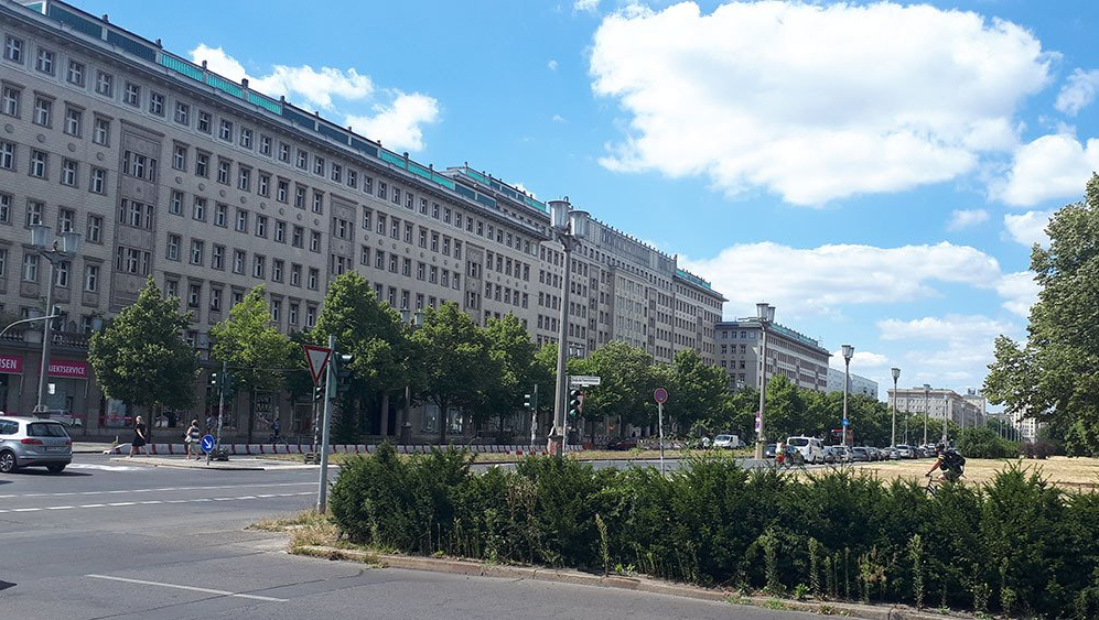 Nun geht's mit U-Bahn und Tram zum Computerspiele-Museum. Mein Jüngster programmiert vollberuflich Spiele, aber auch wir anderen haben Freude an einer interessanten Austellung mit Exponaten aus verschiedenen Äras; sogar die zu den Spielen passenden Jugendzimmer aus den 70er und 80er Jahren wurden nachgebaut. Die Architektur der Straße – früher einmal "Stalinallee" – diente schon Filmen und Serien als Filmset für Moskau und anderswo, denn hier wurden auf einer Länge von ca. 2 km Vorzeigewohnbauten im stalinistischen Klassizismus gebaut. Man kommt sich ganz klein vor auf der überbreiten Straße, aber die Wohnungen oberhalb der Ladenzeilen sollen recht komfortabel sein – wenn man denn eine bekommt.