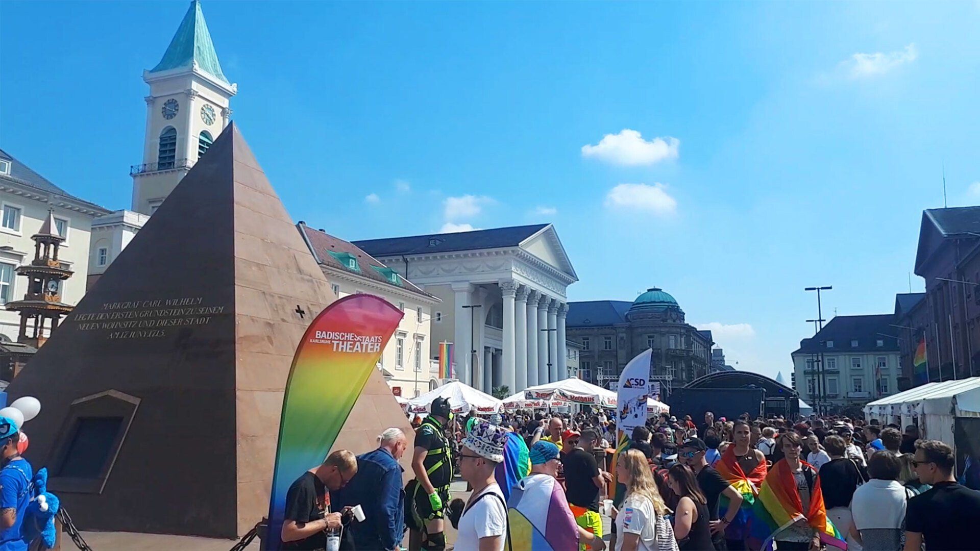 Am Bahnhof sind uns schon junge Leute aufgefallen, die mit LGBTQ-Fahnen herumlaufen. Und als wir am Marktplatz aus der Bahn steigen, die dort mittlerweile unterirdisch fährt, stehen wir tatsächlich mitten in einem CSD (Christopher Street Day), ohne dass wir gewusst hatten, dass der dort heute stattfindet. Wir wollten dieses Jahr ohnehin mehrere CSDs besuchen und freuen uns über diesen glücklichen Zufall. Es ist nett und bunt und wie immer trifft man lauter hochinteressante Menschen.