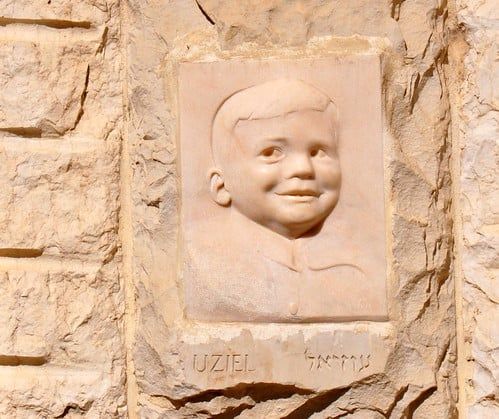 Ich möchte an dieser Stelle gar nicht ausführlicher von unserem Besuch berichten, sondern stattdessen etwas herausgreifen, das mich in besonderer Weise berührt hat: Die Kindergedenkstätte. Der Weg führt durch aus Felsensteinen gemauerte Wände unter einen Felsen, vorbei an einem lachenden Kindergesicht, das als Relief vor dem Eingang an der Wand angebracht ist – der kleine Uziel Spiegel, Sohn der Initiatoren der Gedenkstätte, der ihnen im Alter von zweieinhalb Jahren in Auschwitz entrissen worden war. Und dann steht man im Dunkeln und die Vogelstimmen von draußen sind verstummt. Leise Töne sind zu hören und eine Stimme liest die Namen der jüdischen Kinder, die während der Naziherrschaft ermordet worden sind, ihr Alter und woher sie kamen. Eines nach dem anderen. Und es braucht etwa drei Monate, bis das Band wieder an seinen Anfang kommt. Aber es ist nicht wirklich dunkel – man geht an einem Geländer entlang einen Weg, der, so scheint es, von unzähligen kleinen Lichtern umgeben ist. Jedes steht für ein Kind, für ein Opfer der Barbarei, eine kleine, leuchtende Seele. Eigentlich sind es nur fünf Kerzen, deren Licht sich viele tausend mal spiegelt, aber man hat den Eindruck, in einem Weltenraum zu stehen und in die Unendlichkeit der Trauer zu blicken. Keine schrecklichen Bilder, hier schreit das Unrecht nicht, hier singt es leise – nur unzählige Lichter in der Dunkelheit und die Namen, immer mehr Namen. Ich spüre die Hand meiner Frau und sie hilft mir wieder hoch.