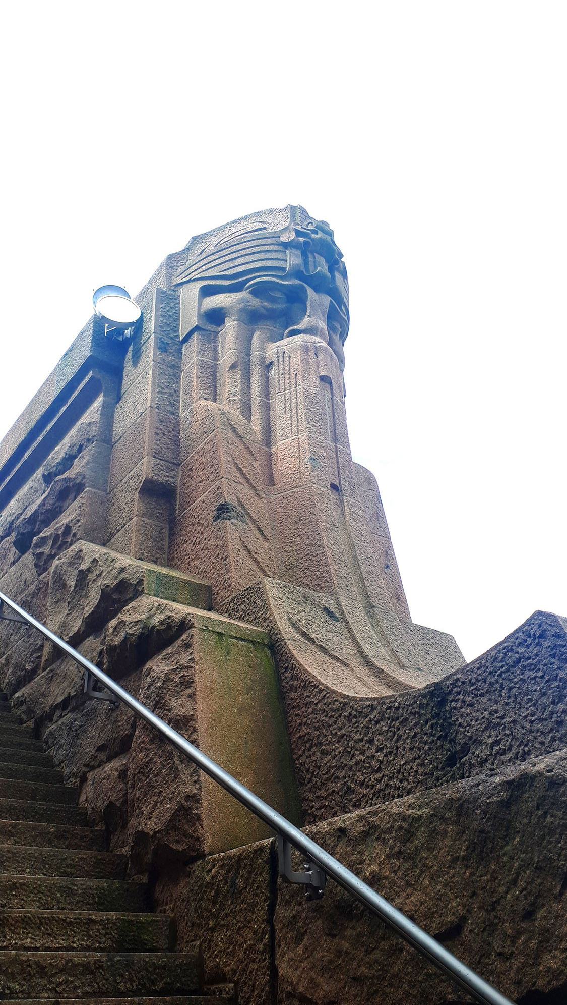 Mit der Straßenbahn geht's zum Völkerschlachtdenkmal – ein Muss für Leipzig-Reisende. Einen so riesigen und hässlichen Klotz, aus dem überkommener Nationalismus quillt wie der Inhalt eines Hundekackebeutels in der Sonne, bekommt man selten zu Gesicht. Dennoch: sehenswert. Ich fühle mich angesichts der überlebensgroßen Steinfiguren und der Symbolik stark an die Zwergenstadt unter dem Berg aus „Der Hobbit“ erinnert. Doch, ich bin sicher: hier waren Zwerge am Werk. Wir verzichten auf die kostenpflichtige Besichtigung der Ruhmeshalle und der Krypta im Inneren und nehmen die nächste Tram, um die Innenstadt zu entdecken.