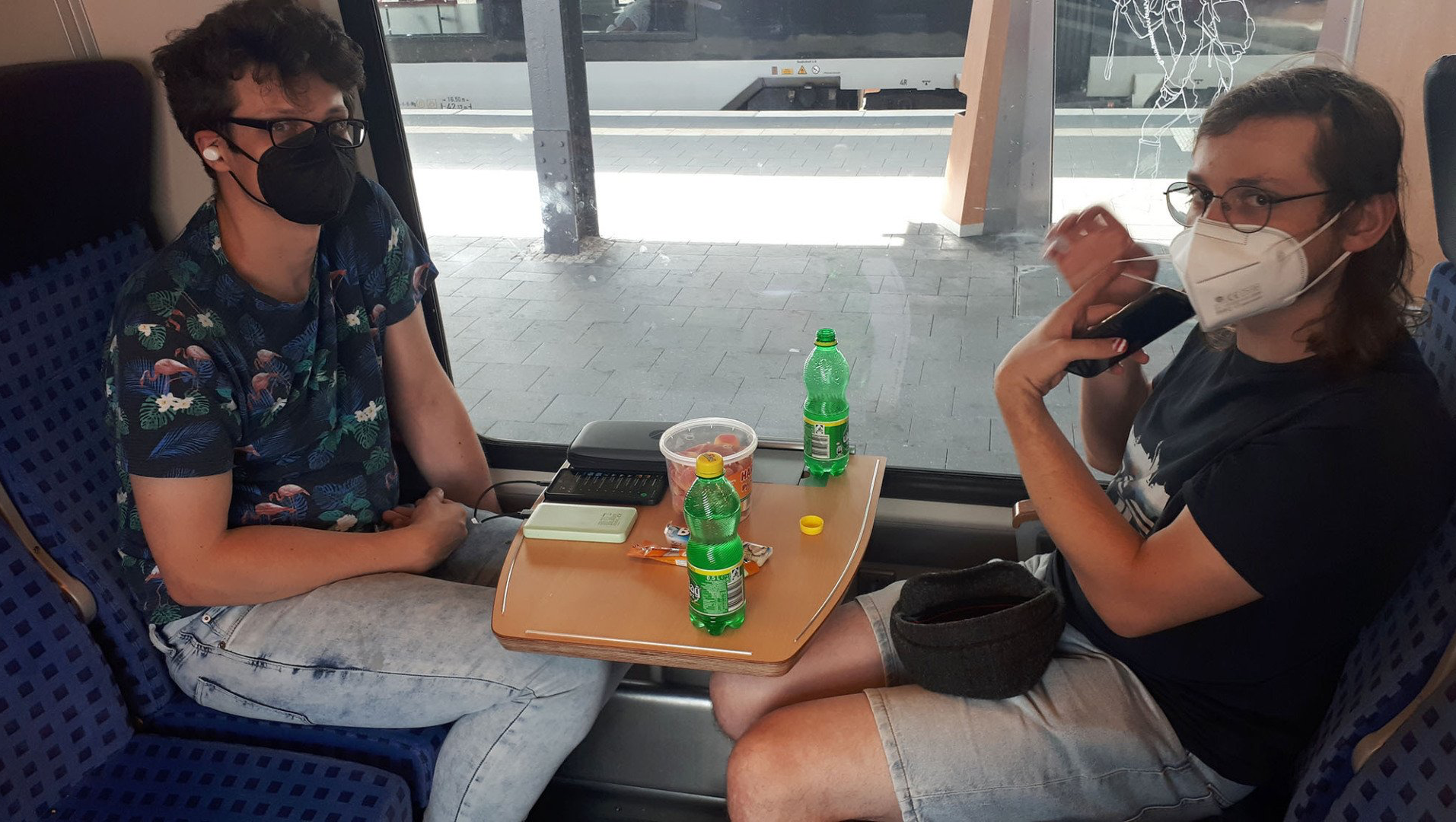 Der Bahnsteig ist voll und wir machen uns darauf gefasst, Sitzplätze erkämpfen zu müssen, aber die Sorge stellt sich als unbegründet heraus. Wir sitzen zusammen, haben Beinfreiheit, der Zug ist angenehm klimatisiert und zum allerersten Mal auf unserer Reise fährt eine Bahn pünktlich ab. Es gibt sogar funktionierendes WLAN! Und zum ersten Mal erscheint auch ein Zugbegleiter, um die Fahrkarten zu kontrollieren. Endlich mal das 9-Euro-Ticket zeigen! – aber da hält der Zug in Dessau und wir müssen umsteigen. Wieder nix! ^^ Auch unser Anschluss nach Berlin ist nur mäßig voll und bietet den erhofften Sitzkomfort. So macht Bahnfahren Spaß.