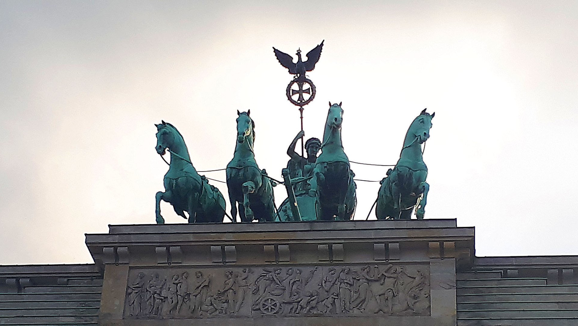 Wir fahren zum Brandenburger Tor – Touristenpflicht – und sichten auf unserem Weg zum Reichstag einzelne Leute, die uns mit total widersinnigen oder komplett unverständlichen Schildern oder Transparenten entgegenkommen und überhaupt ziemlich verpeilt wirken. Da fällt es mir siedendheiß ein: für heute wurde ja wieder mal dazu aufgerufen, dass eine radikale Splittergruppe, die sich fälschlicherweise „Querdenker“ nennt und sich in gnadenloser Selbstüberschätzung für „Das Volk“ hält, millionenfach die Regierung stürzt oder zumindest der russischen Botschaft ausliefert oder irgend so etwas, die sind da nicht so konsistent.